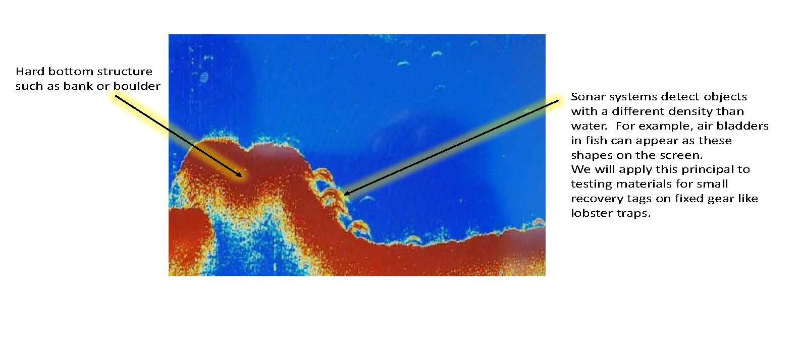 Fishing vessels are usually equipped with sonar systems that could be used to detect tags without specialized equipment. These systems work by emitting ultrasonic sound waves through a transducer and then reading an echo or “signature” when they detect objects with a different density than water. Gillnet floats are known to produce very strong sonar signals, as are some highly reflective metals. This project will test the sonar signal of these materials using an experimental trawl and commercial fishing vessel sonar equipment at four depths. Using underwater cameras, it will confirm that the addition of the tag does not interfere with the typical fishing behavior of the trap. In addition to working with commercial fishermen, an intern position will be supported for an undergraduate in the Ocean Engineering Department at the University of Rhode Island.