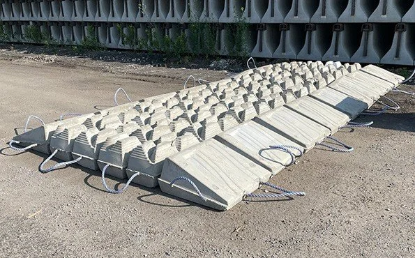 Tapered-edge concrete cable protection mattress, similar to those installed along the Revolution Wind Export Cable route. Photo credit: ECOncrete, 2023
