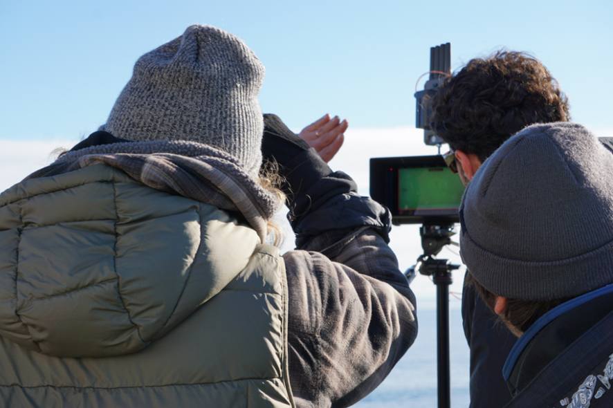 CFRF research biologist and students from the Undersea Robotics & Imaging Laboratory view live imaging of the Narragansett Bay seafloor.